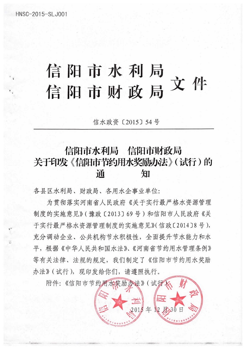 信陽(yáng)市水利局 信陽(yáng)市財(cái)政局關(guān)于印發(fā)《信陽(yáng)市節(jié)約用水獎(jiǎng)勵(lì)辦法》(試行)的通知